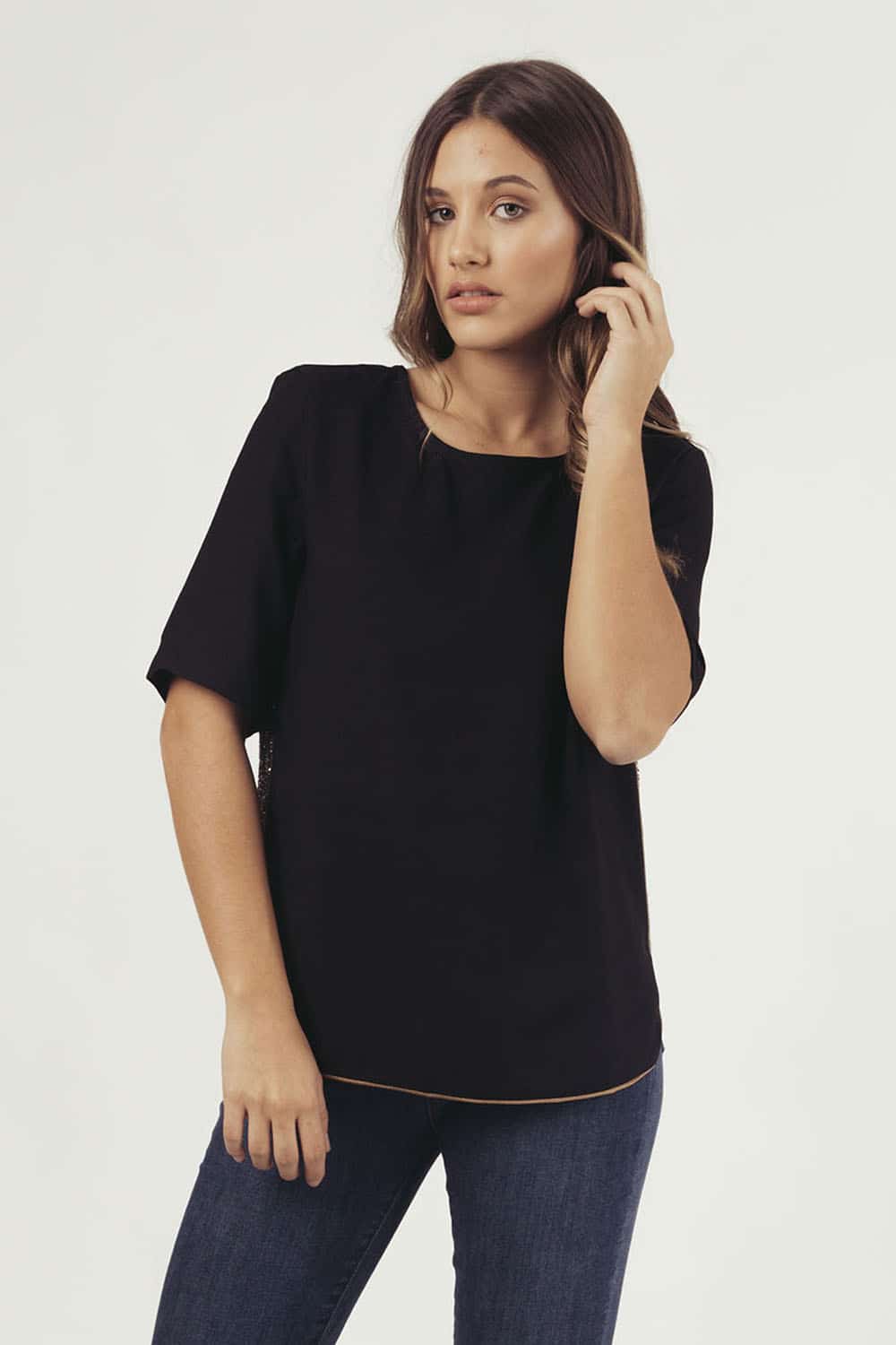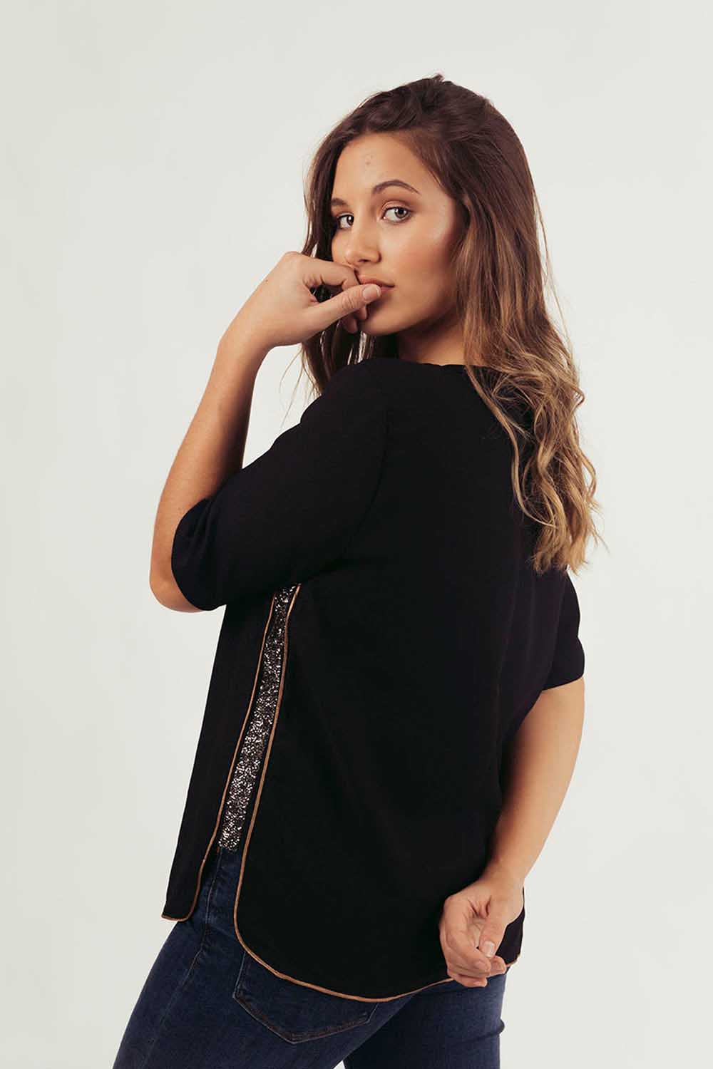 BLUSA M/C GRANADINAS - negro - m NEGRO M $ 590
