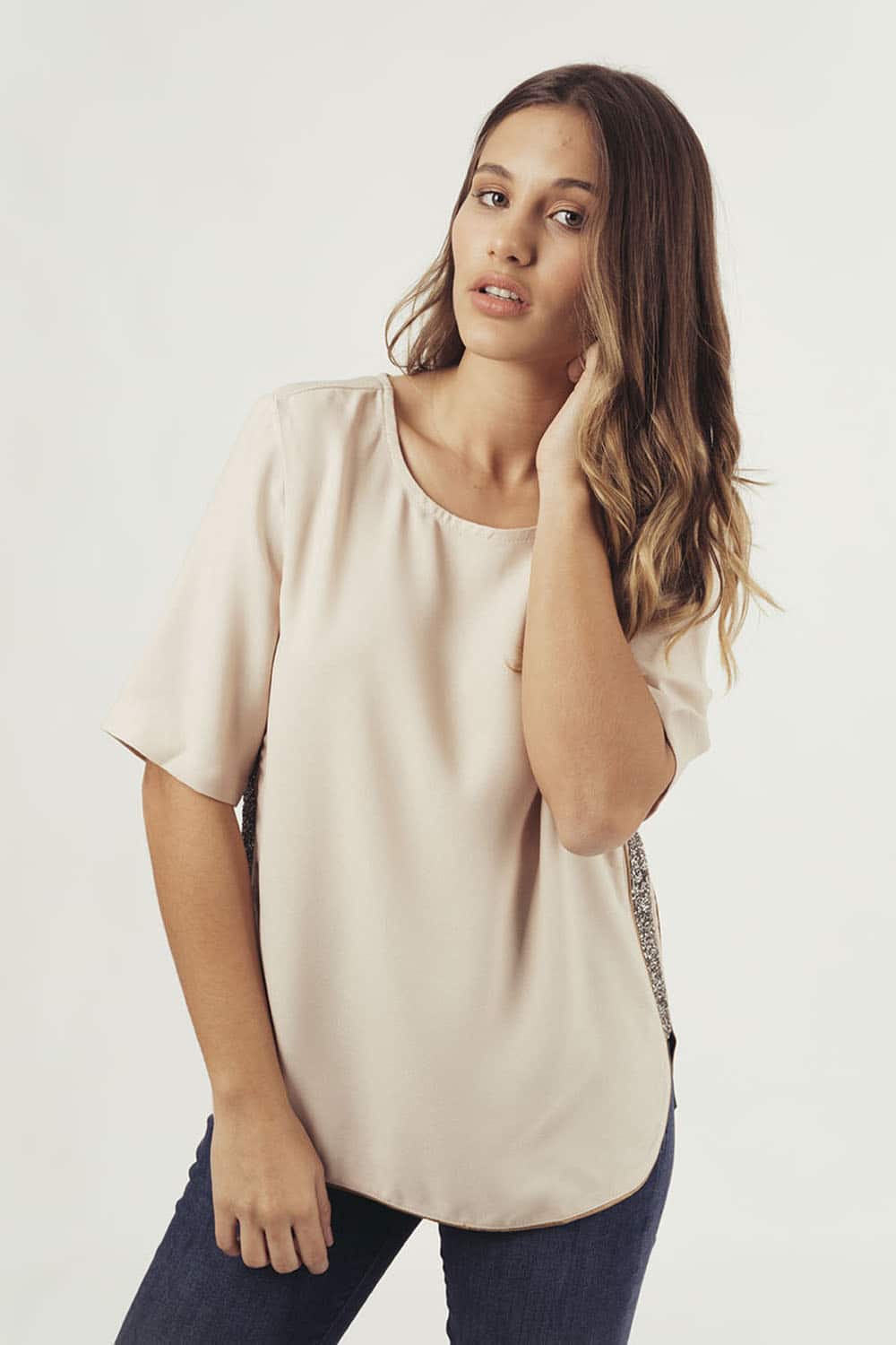 BLUSA M/C GRANADINAS - nude - l NUDE L $ 590